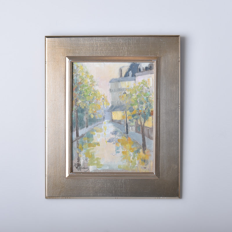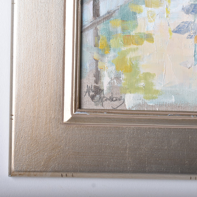 An evocative oil painting on board capturing the essence of urban life. Artist Allison Chambers brings the energy and character of the cityscape to life with rich, expressive brushwork. The framed piece makes an immediate statement in any room, adding sophistication and artistic depth to your space. Perfect for collectors and those seeking meaningful wall art that sparks conversation and contemplation.