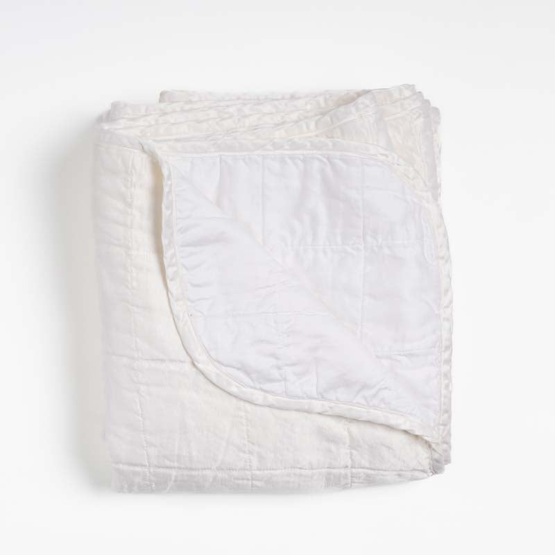 Lightweight and luminous, the Sel Throw Blanket is a handcrafted layer of easy-care elegance. Its square quilt pattern adds texture to silk-linen charmeuse, while a cotton sateen backing offers soft, breathable comfort. Sized perfectly for the foot of a bed or a cozy spot on the sofa, itÕs a functional favorite with a touch of shimmer. View more pieces from the Sel collection.