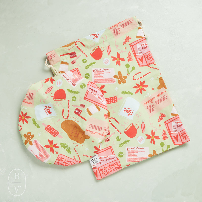 Celebrate the art of baking with the Heirloom Baking Bread Baker Set. This charming collection pairs a festive green bowl cover with a crisp white bread bag, both featuring delightful holiday-inspired illustrations. Ideal for proofing, storing, or gifting, it merges nostalgic charm with everyday practicality—the perfect addition to any baker's kitchen.