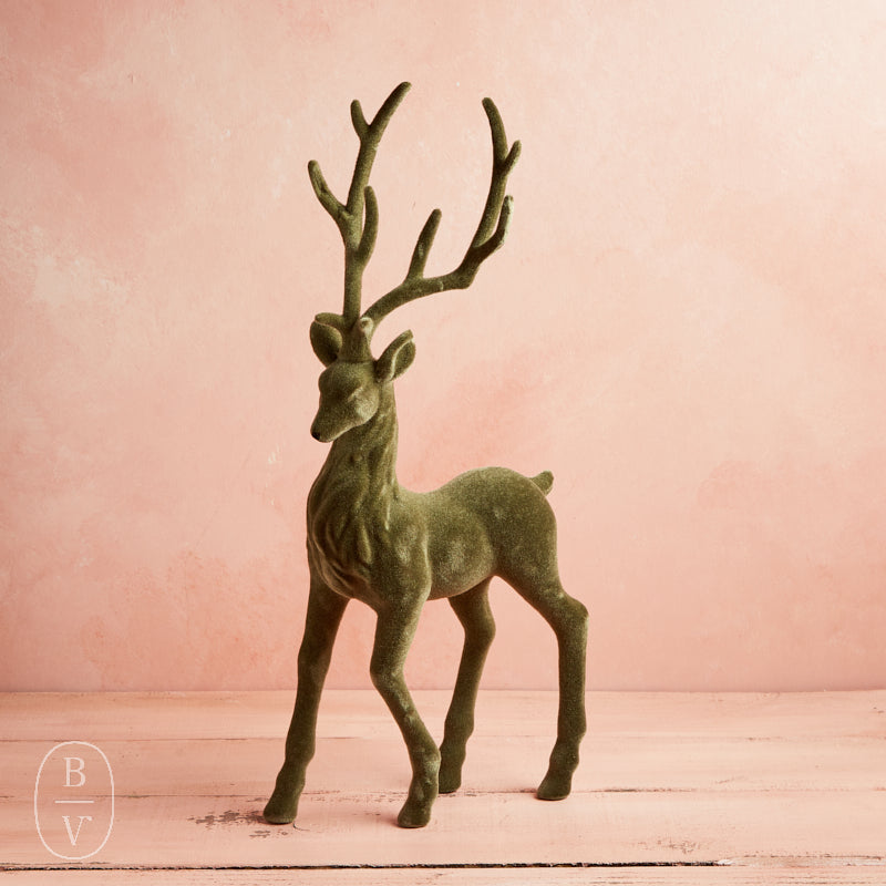 These green flocked deer add a sophisticated woodland touch to your holiday décor. With lifelike antlers and a velvety finish, they look stunning on their own or as a pair.