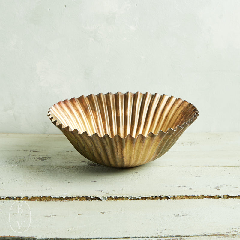 Bring timeless elegance to your décor with these gold fluted metal bowls. Featuring a scalloped edge and a radiant antique gold finish, each bowl makes a statement whether styled as a centerpiece, filled with seasonal décor, or displayed on its own. Available in two sizes, these versatile bowls add a touch of sophistication to any setting.