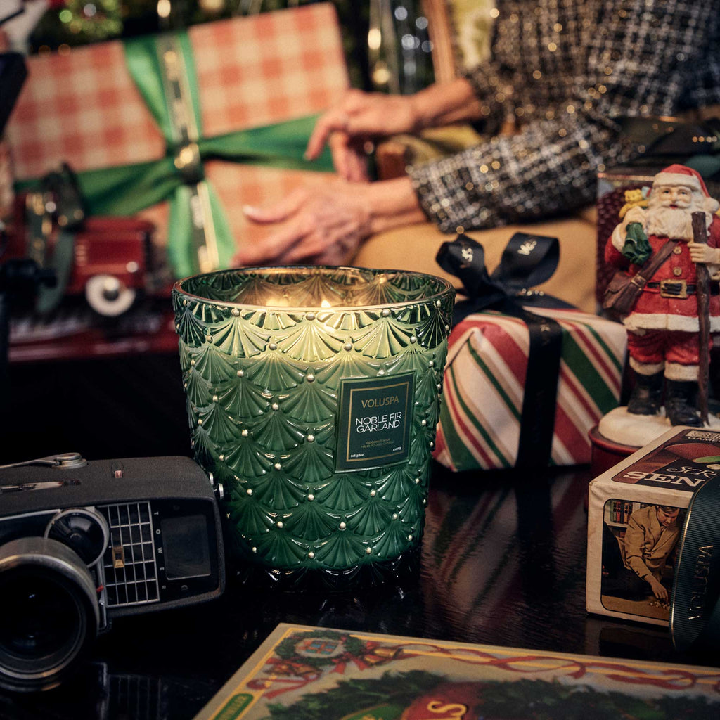 - Noble Fir Garland: Noble Fir Needles, Cedarwood, Glowing Amber, Cashmere Musk