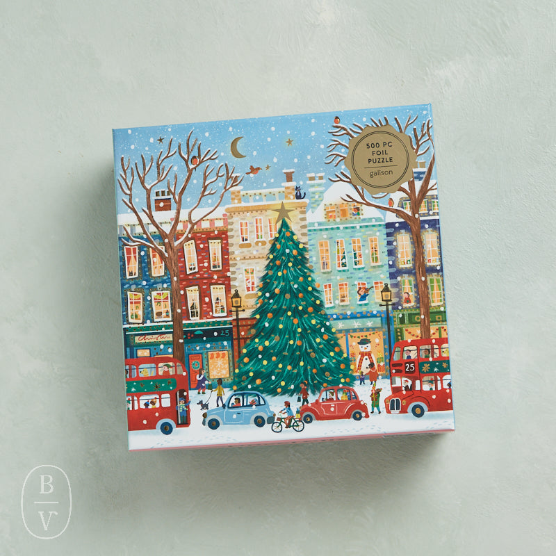 Bring a touch of festive charm to your home with this beautifully illustrated Christmas puzzle. Featuring a bustling holiday street scene—complete with twinkling lights, classic red buses, cozy townhomes, and a grand Christmas tree at the center—this 500-piece puzzle captures the joyful energy of the season. Perfect for cozy winter nights or as a thoughtful gift, it’s a delightful way to slow down and enjoy the magic of the holidays piece by piece.