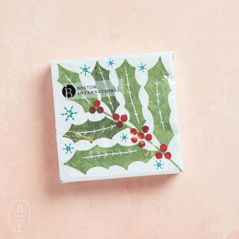 Bring cheer to your holiday celebrations with these Winter Berry Holly Cocktail Napkins. Their vibrant holly and berry design with snowy accents make them ideal for serving drinks and appetizers in festive style.