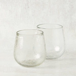 Sculpted with intention and character, this stemless wine glass is defined by its hand-hammered texture—each subtle dimple catching the light with an artisanal gleam. The silhouette is modern yet grounded, offering a refined alternative to the traditional wine glass. Whether...