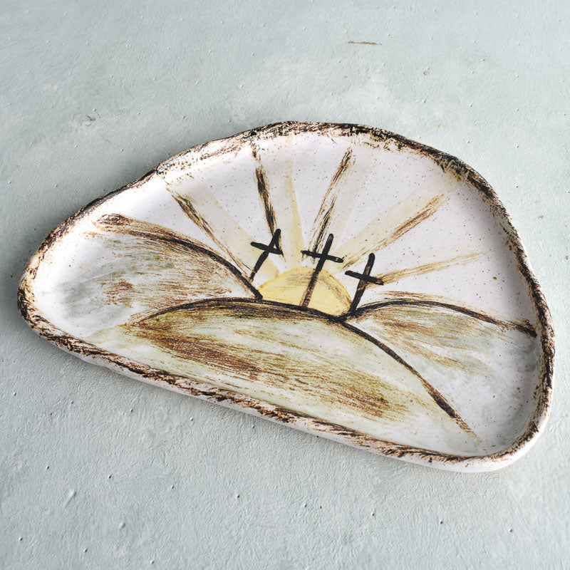 The Sunset Calvary from Etta B Pottery features three crosses set against a glowing sunset on a quiet hilltop. Handmade and hand-painted with expressive brushstrokes, it has a warm, meaningful presence that works beautifully as tabletop décor. The handcrafted finish ensures every piece has its own character. View more items from Etta B Pottery’s Easter Collection.