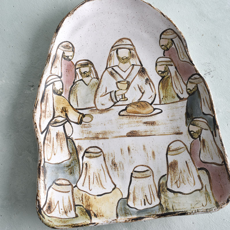 The Last Supper dish from Etta B Pottery captures the meaningful scene of Jesus sharing a meal with the twelve disciples. Handmade and hand-painted, it’s designed as a decorative piece that can be displayed on a tabletop or stand. The detailed artwork and handcrafted finish make it a special addition to faith-filled décor. View more items from Etta B Pottery’s Easter Collection.