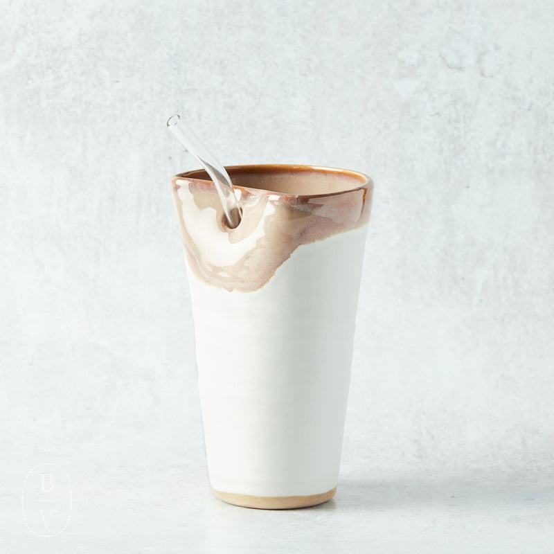 Elevate your drinking experience with our Tumbler With Glass Straw! Sip your favorite beverage from the handmade beauty of Etta B Pottery's tumbler and feel good about reducing single-use plastic with the coordinating glass straw. Cheers to a charming experience whilst contributing to sustainability!