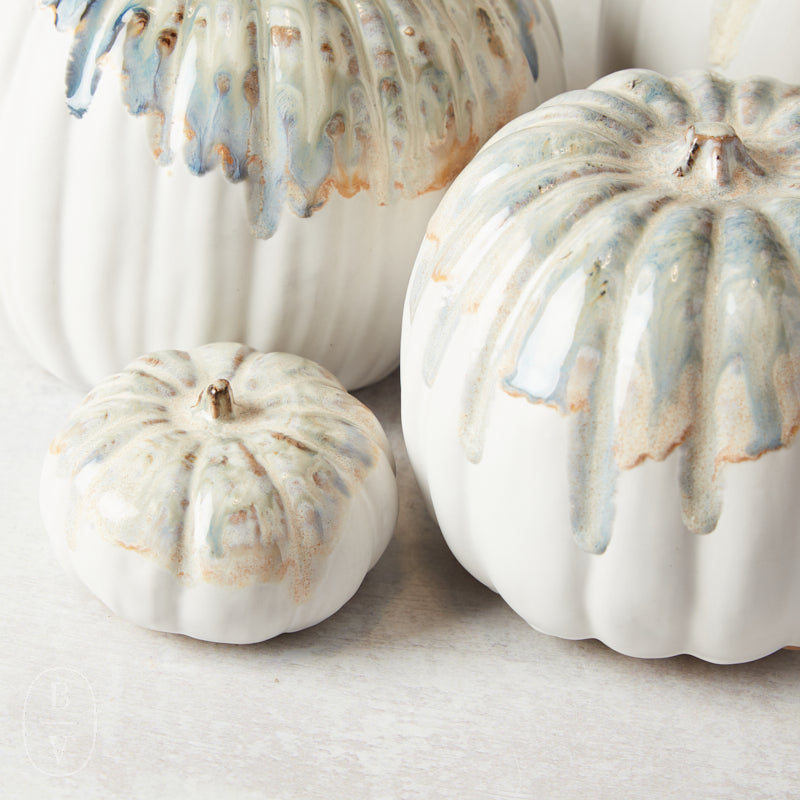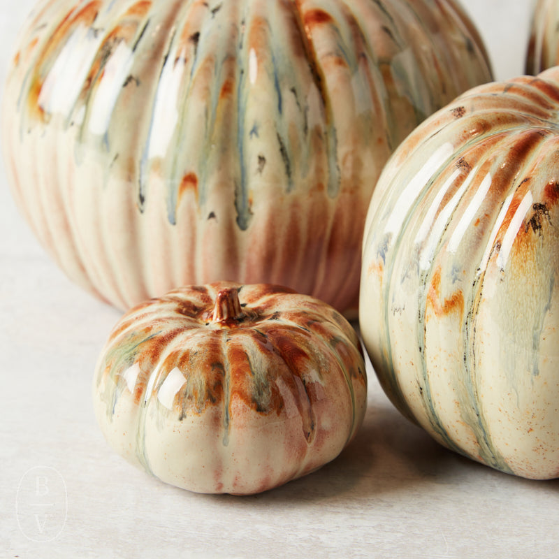 Color GuideIntroducing our handmade, drip glazed Pumpkin Figurine by Etta B Pottery - the must-have fall decor item! Available in various sizes and colors, each piece is beautifully crafted with a unique drip glaze, making it a one-of-a-kind creation. This charming piece will add a touch of whimsy to your home this season. Get yours before they're gone! View more from the Etta B Fall Collection.