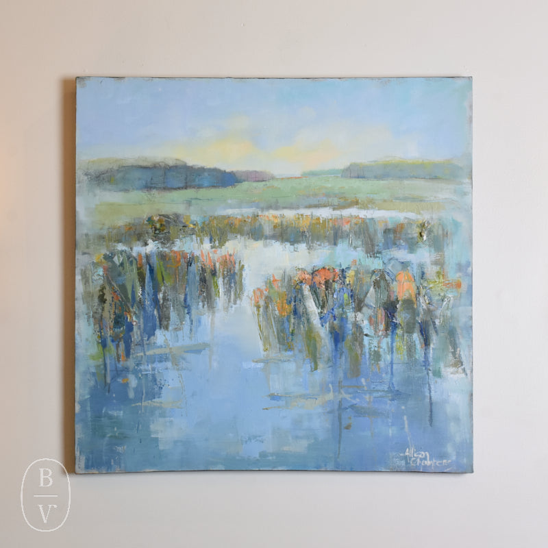 SIMPLY STATED - Bring the beauty of the outdoors inside your home with this breathtaking landscape painting. Color and texture are the driving forces behind the artwork of Allison Chambers. Often inspired by her travels, Allison is known for her signature impasto style, achieved by palette knives and oil paint, her medium of choice. She loves to challenge herself with various color palettes and is a proud advocate of "happy accidents" on the canvas as she works. Allison currently resides in Charlotte, North Carolina with her husband, son, and five daughters. View all Allison Chambers Art.