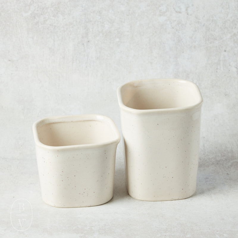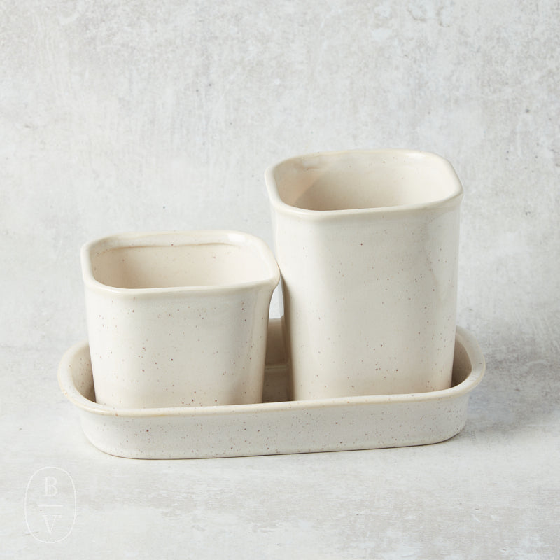 This stoneware planter set offers a simple, modern way to style your greenery. The neutral finish and soft organic shape make it an easy fit for any room. Complete with a matching saucer, the set includes two planters in different sizes—perfect for herbs, succulents, or small indoor plants. A practical yet stylish choice for everyday living.