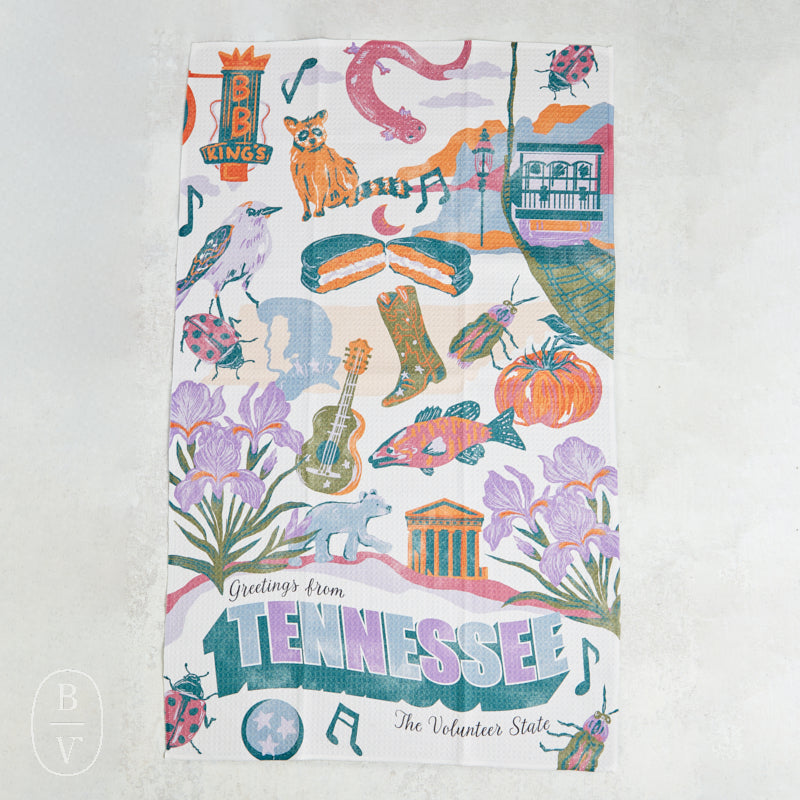 Bring Southern charm to your kitchen with this GREETINGS FROM TENNESSEE TEA TOWEL. Ultra-absorbent and quick-drying, it masterfully combines style with everyday practicality. Whether you're wiping down counters or adding a decorative touch to your culinary space, this versatile towel delivers. Its thoughtful design makes it an ideal gift for the holidays or any occasion—perfect for anyone who appreciates quality home essentials with personality.