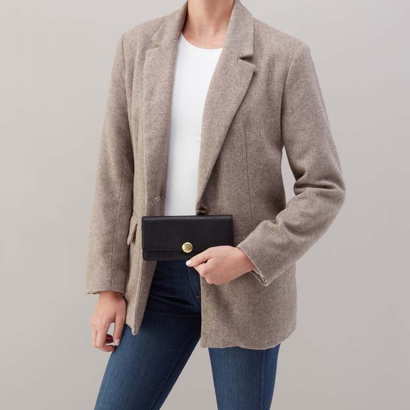 The Hutton Large Wallet by Hobo is a timeless continental wallet designed for those who appreciate enduring craftsmanship. Crafted from supple micrograin leather, it develops character with every use—a piece meant to be worn and loved for years to come. Featuring a secure magnet snap closure, this wallet keeps your essentials protected. With capacity for 12 cards and generous bill storage, you'll have everything you need without compromise.