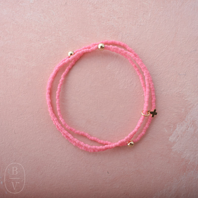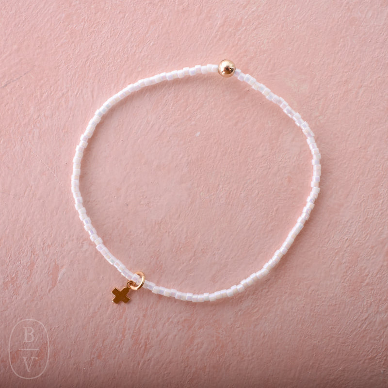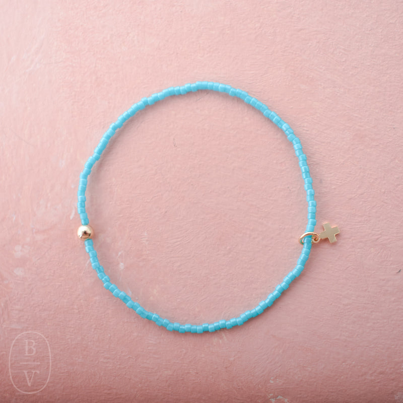 Hand beaded in Atlanta, Georgia, the Hope Classic Charm Bracelet is elegant on its own or makes a beautiful, colorful statement when stacked with other bracelets. Not only will it add a touch of glamour to your outfit, but it can be worn all the time. Even in the shower or pool!