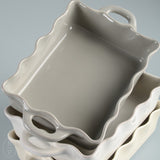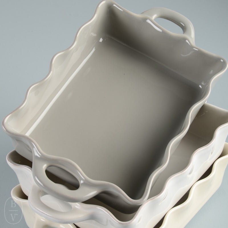The Ruffled Medium Rectangle Baker combines everyday function with elegant detail. Crafted in Portugal from durable stoneware, it features softly ruffled edges that add a delicate, decorative touch to its practical form. Perfect for baked dishes, casseroles, or desserts, it transitions seamlessly from oven to table with effortless charm.