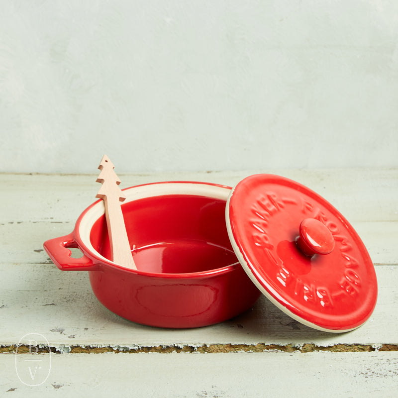Elevate your holiday entertaining with this charming red stoneware brie baker, the perfect centerpiece for festive gatherings. The rustic ceramic dish keeps your cheese warm and melting to perfection, while the whimsical tree-shaped wood spreader adds a delightful seasonal touch. Ideal for Christmas dinners, New Year's parties, or cozy winter celebrations, this thoughtful set combines functionality with festive flair. Your guests will love the presentation, and you'll appreciate how effortlessly it transforms any charcuterie board into a showstopper. A must-have for anyone who loves hosting with style.