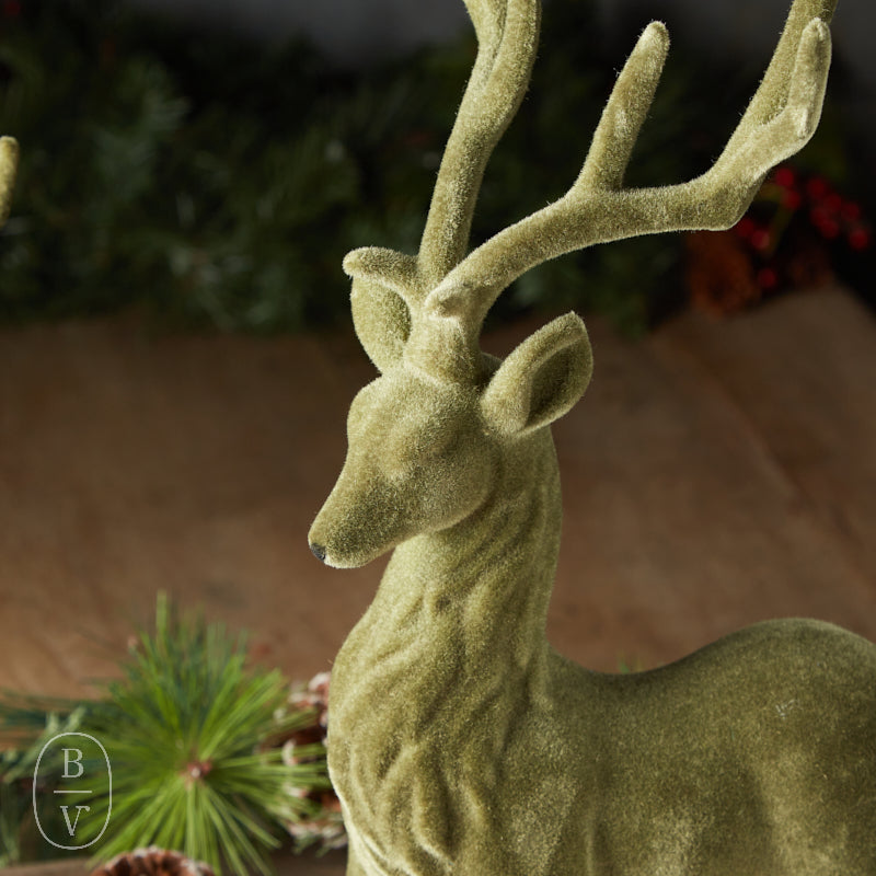 These green flocked deer add a sophisticated woodland touch to your holiday décor. With lifelike antlers and a velvety finish, they look stunning on their own or as a pair.