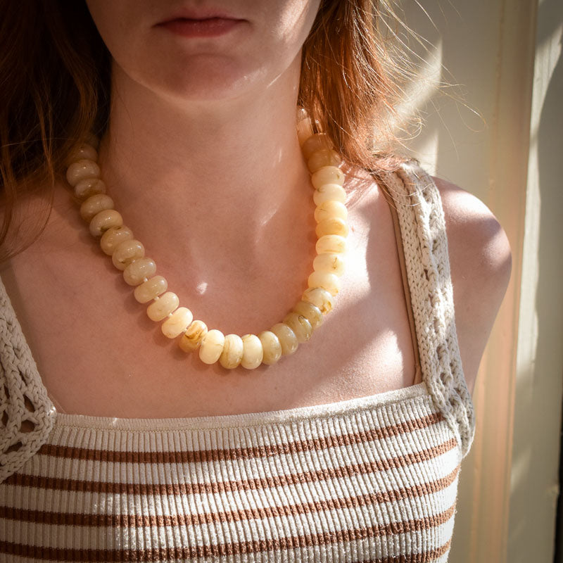Elevate your everyday look with this striking chunky marble bead necklace, featuring natural stone in multiple color options that add texture and sophistication to any outfit.