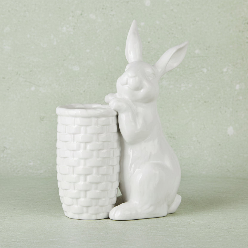 This charming white ceramic rabbit vase brings whimsical spring appeal to any room and makes the perfect Easter accent piece. Display it solo or fill it with fresh blooms for a delightful seasonal touch that celebrates the holiday in style.