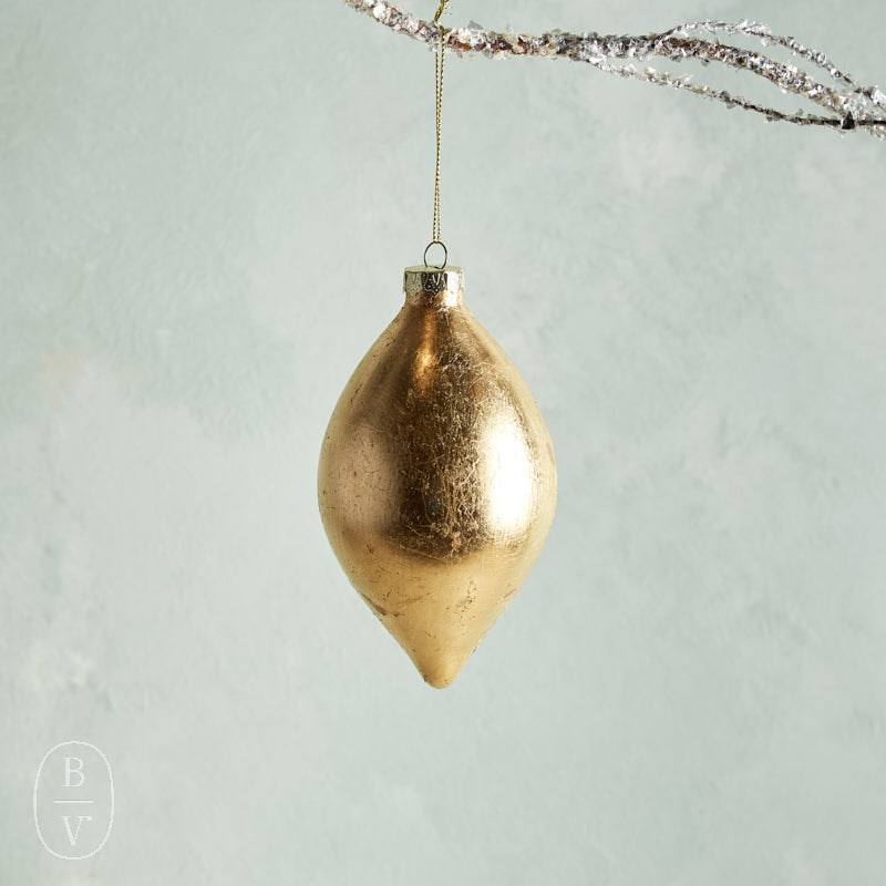 The gold leaf ornament adds a touch of timeless elegance to any holiday tree. Each gold glass ornament features a smooth, leafed finish that catches the light beautifully, creating a soft, luminous glow. The assorted shapes—teardrop, round, and onion—add visual interest and variety while maintaining a cohesive, classic look. Perfect for both modern and traditional holiday décor, these ornaments can be displayed together for a refined, metallic statement or paired with other textures for a layered, festive effect.