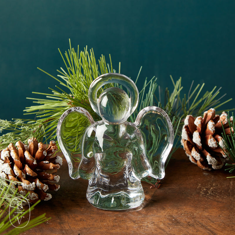 A simple yet meaningful accent, this handblown glass angel adds a touch of grace to any space. Perfect for gifting or displaying year-round, its clear, sculpted form catches the light beautifully.