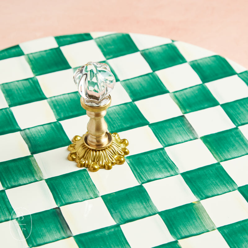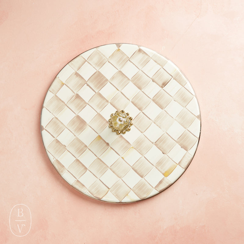 Serve your favorite cheeses or small bites in style with this hand-painted enamel cheese course. Finished with a decorative knob and classic checked design, it’s equal parts functional and eye-catching—perfect for entertaining or gifting.