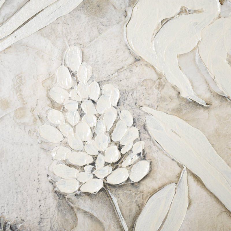 With its soft neutral palette and sculptural surface, this botanical piece brings quiet dimension to any room. Subtle texture and tonal variation create a natural, collected feel that evolves beautifully with light throughout the day.