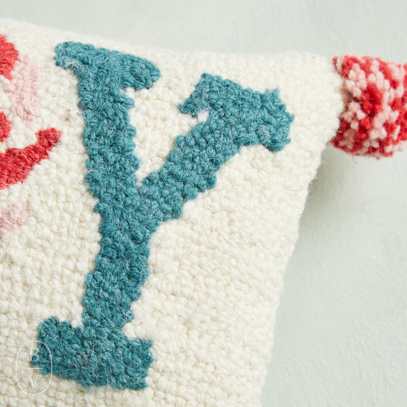 Celebrate the season with our cheerful Joy Hook Pillow! Featuring bold blue lettering, a festive red wreath “O,” and playful pom-poms on each corner, this accent pillow brings cozy whimsy to your holiday décor. Hand-hooked for a textured look and feel, it’s perfect for layering on your sofa, entryway bench, or bed for an instant touch of Christmas cheer.