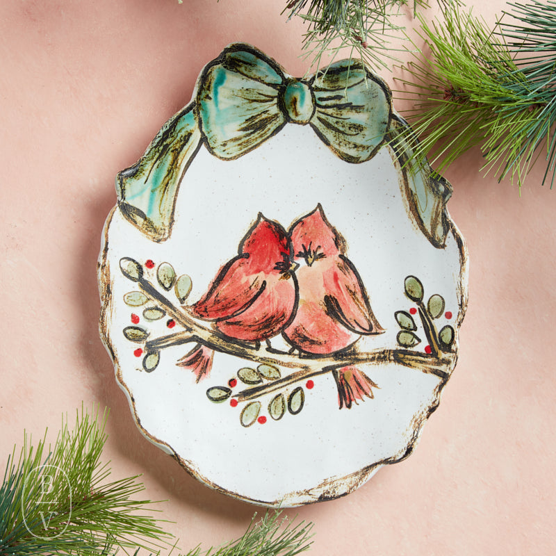 The Together in Winter Plate from Etta B Pottery captures the warmth of the season with a hand-painted pair of cardinals perched on a branch, framed by a festive bow. A symbol of love and togetherness, this design is as meaningful as it is beautiful. With its scalloped edge and versatile size, it’s perfect for serving holiday favorites or displaying as a special accent piece throughout the winter months.