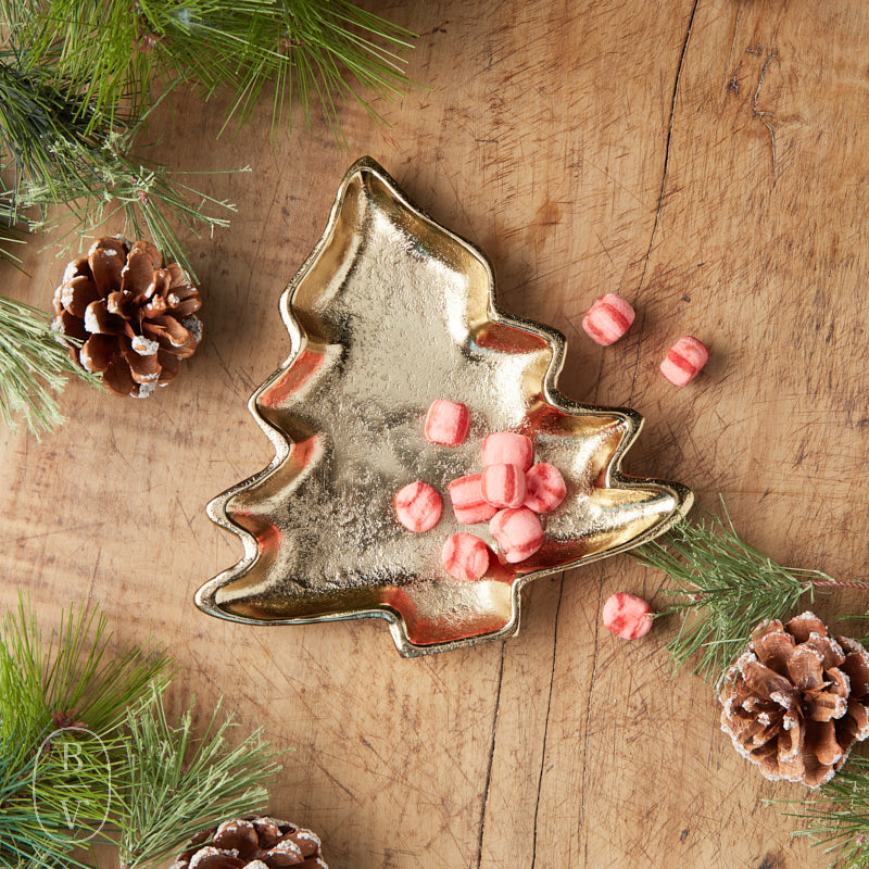 Elevate your décor with this elegant gold aluminum tree-shaped dish, a sophisticated piece that transitions seamlessly from tabletop accent to entertaining essential. Position it on a side table to catch the light with its warm metallic finish, or showcase it as the centerpiece of your festive spread. Perfect for displaying seasonal treats, nuts, or candies, this charming dish brings both style and function to your home while making an impressive statement at holiday gatherings.