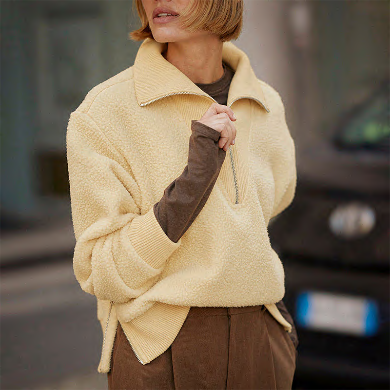 - Features: Ribbed hem and cuffs. Side zips.