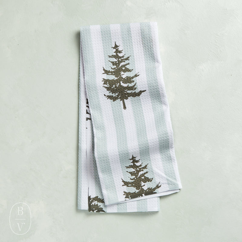 Bring a touch of winter calm to your kitchen with the Fir Real Tea Towel. Featuring a simple yet elegant pattern of evergreen trees on soft stripes, this towel captures the serene beauty of the season. Ultra-absorbent and quick-drying, it’s the perfect blend of form and function—ideal for everyday use or gifting during the holidays.