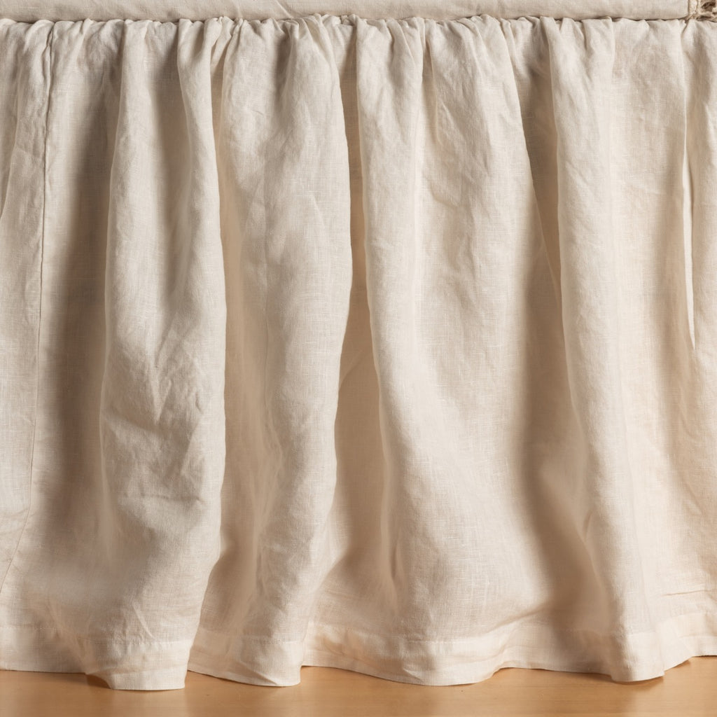 Hand-crafted by master sewers and made to order in an artisanal dye house, each piece of bedding by Bella Notte Linens is an exquisite one-of-a-kind garment with its own unique tonal variation. Both practical and beautiful, this bed skirt is made with the Linen fabric- light, breathable, and softer with every sleep. View more pieces from the Linen collection.