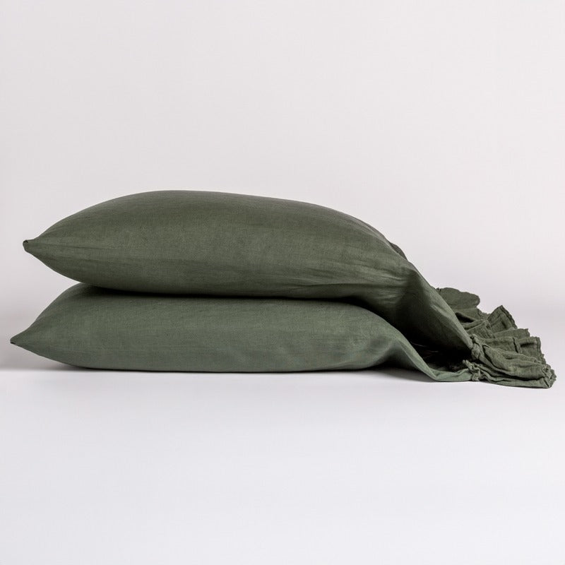 - Features: Hand made and dyed in California with low-impact, non-toxic dyes. Linen with 5" Linen Whisper Ruffle. Sold individually.